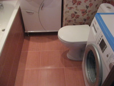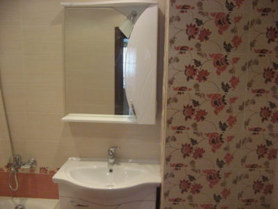 Наша компания выполнила капитальный ремонт санузла в квартире, расположенной на бульваре Кавказский. В результате демонтажных и ремонтно-отделочных работ помещение приобрело аккуратный современный вид. В комнате удалось компактно расположить полноразмерную ванну, двухстворчатый мойдодыр, стиральную машинку, унитаз и полотенцесушитель. Воздухогон облицован керамической плиткой с цветочным рисунком. На остальные поверхности уложена однотонная плитка. Потолок оформлен пластиковыми панелями, в которые вмонтированы точечные светильники. Для освещения зеркала используется небольшое бра. Общая смета составила 122800 руб. На черновые материалы ушло 30900 р.