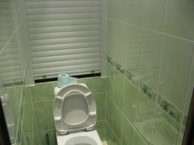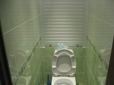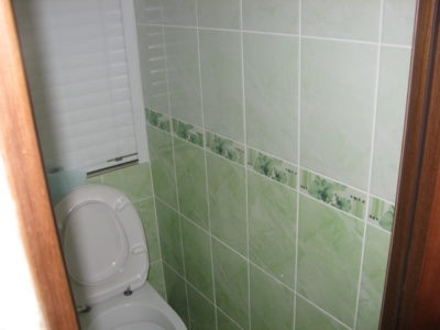 Наша компания выполнила ремонт туалета на улице Чертановская. После проведения демонтажных и ремонтно-отделочных работ в помещении были облицованы стены, оформлен подвесной потолок и уложена на пол керамическая плитка салатового цвета. Инженерные коммуникации скрыты за декоративным экраном по типу вертикальных жалюзи. На потолочной конструкции обустроена точечная система освещения. Вентиляционная шахта закрыта пластмассовой решеткой. Стоимость ремонта под ключ — 29 тыс. руб. На черновые материалы было затрачено 8 тыс. руб.