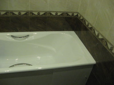 Наша компания выполнила ремонт ванной и туалета на Свободном проспекте. Дизайн выполнен в контрастных цветах с применением белого, коричневого и золотого оттенков.