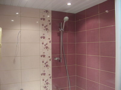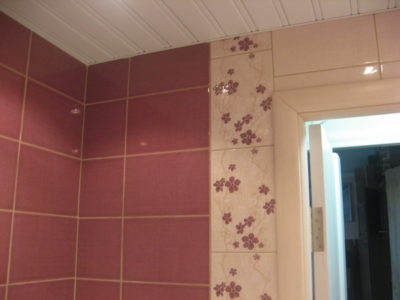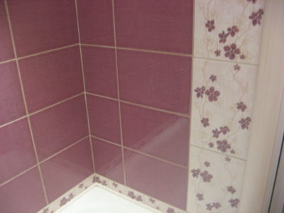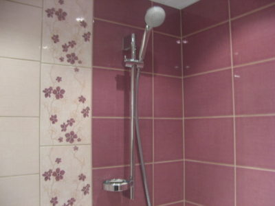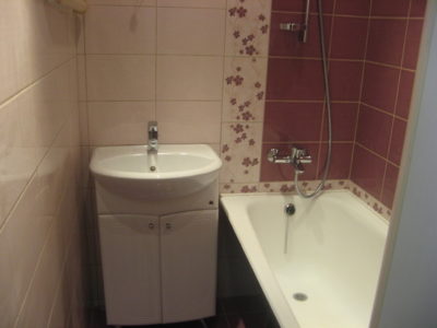 Наша компания выполнила ремонт ванной комнаты на улице Полярная в нежно-розовом и приглушенно бордовом цветах. В ходе работ мы демонтировали старую отделку и сантехнику, заменили дверной проем, установили новую дверь, а также смонтировали ванну и умывальник с тумбой. На пол уложили керамическую плитку темно-красного цвета, а стену украсили кафелем с цветочным принтом. Потолок оформлен белыми пластиковыми панелями. Общая стоимость ремонта составила 66 тысяч рублей. Цена черновых материалов — 23 тыс. руб.